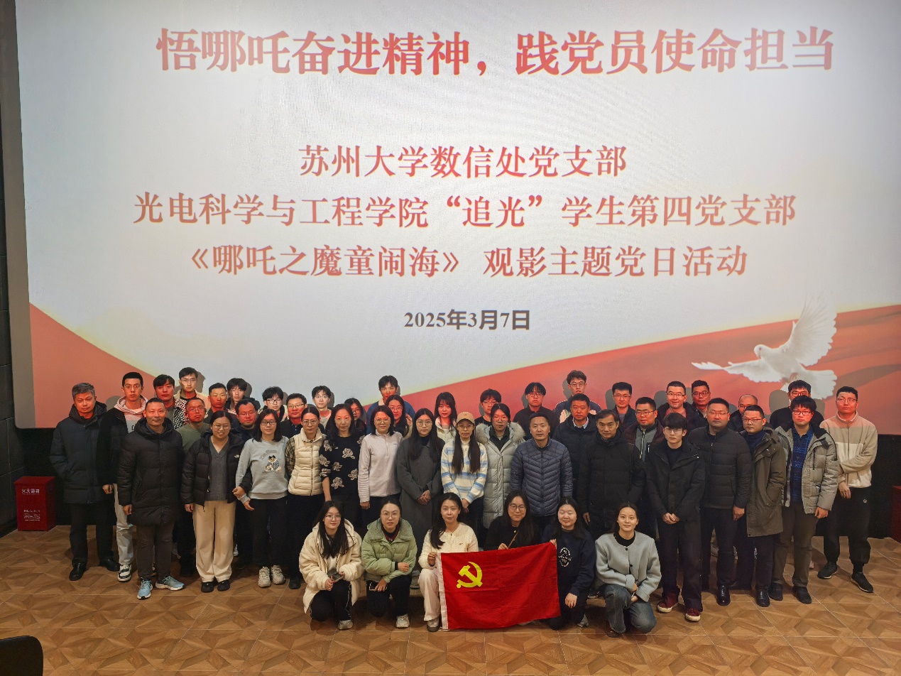 为深入贯彻落实党的二十大精神,进一步弘扬中华优秀传统文化,增强文化自信,3月7日下午,苏州大学数据资源与信息化建设管理处党支部、光电科学院与工程学院“追光”学生第四党支部联合开展主题党日活动,观看影片《哪吒之魔童闹海》。