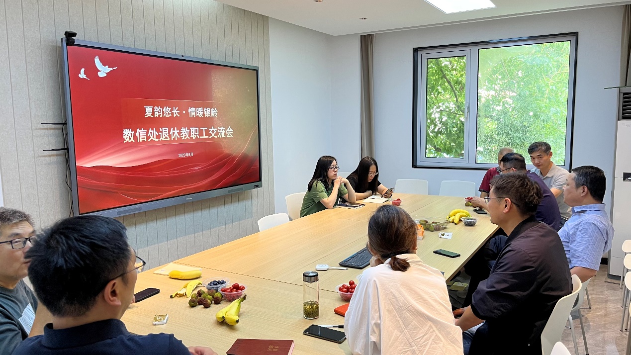 活动伊始,党支部书记张庆代表数信处党支部向退休教职工致以亲切问候和诚挚感谢,感谢他们为学校信息化事业奠定的坚实基础。退休老同志们分享了自己的工作经历和退休生活,回忆起在数信处奋斗的点点滴滴,感慨学校及部门近年来的发展变化,言语中饱含对往昔工作的眷恋和对数信处的深厚感情。