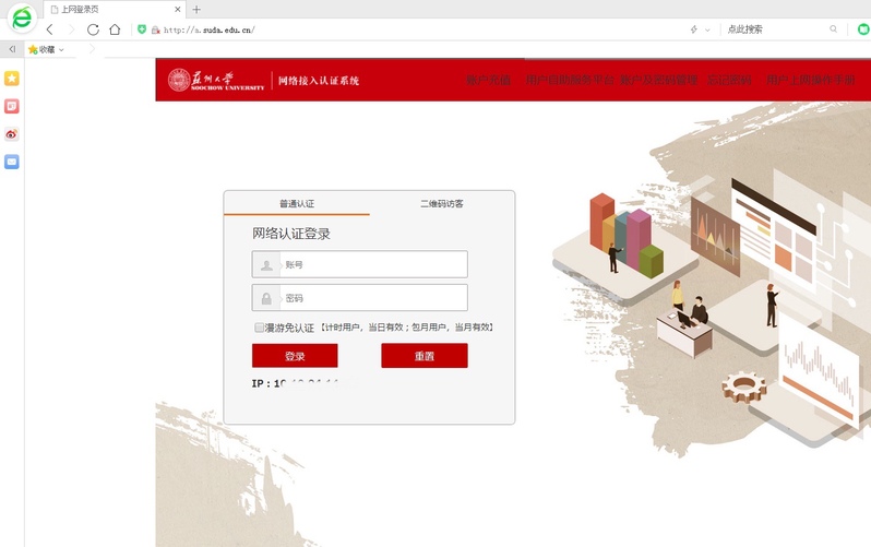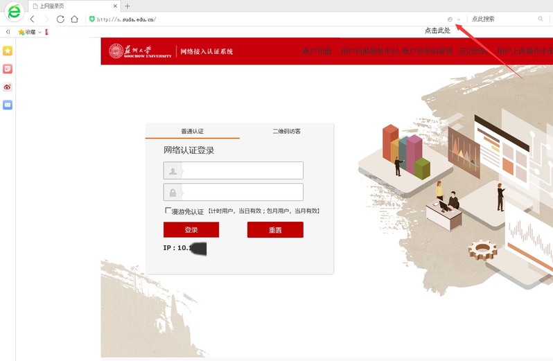 1. 电脑中,打开360浏览器,然后在浏览器中,打开http://a.suda.edu.cn