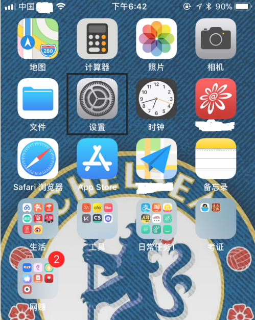 1、打开苹果手机,进入主页面,找到设置图标,点击进入设置页面。