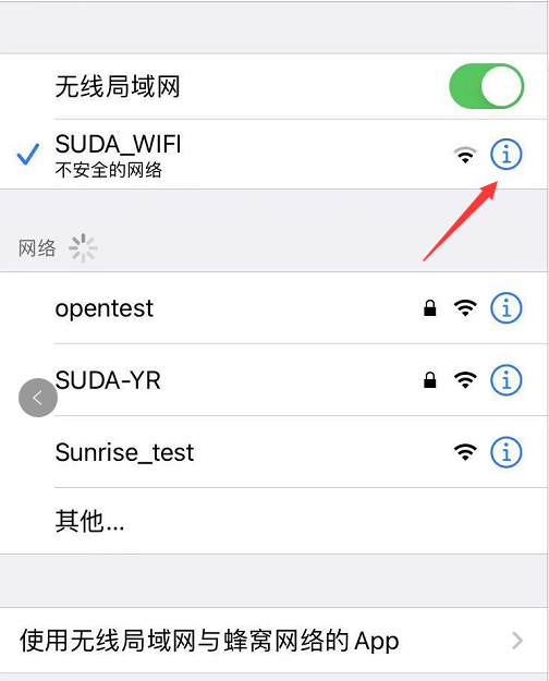 2、进入设置页面后,找到无线局域网,寻找SUDA_WIFI并连接。
