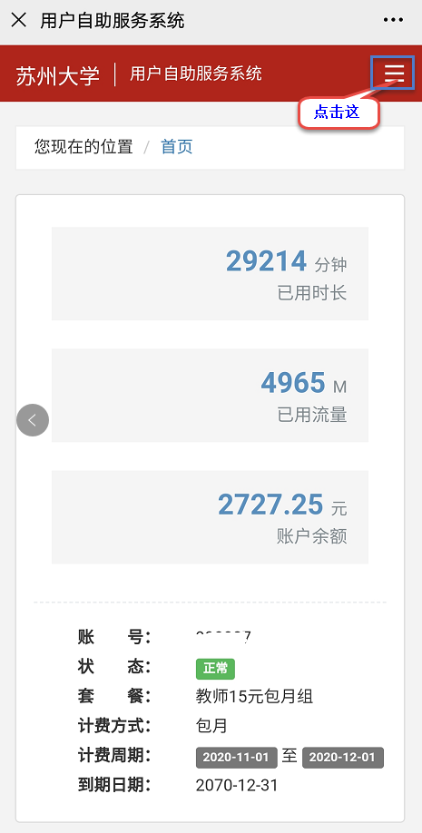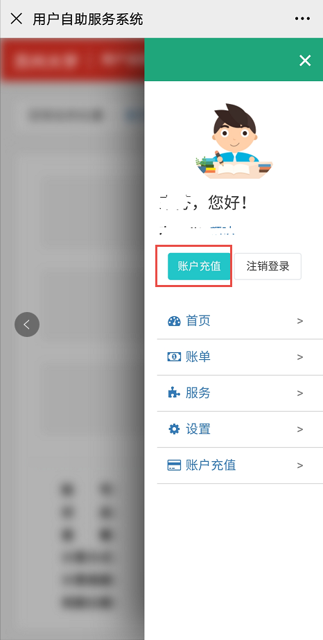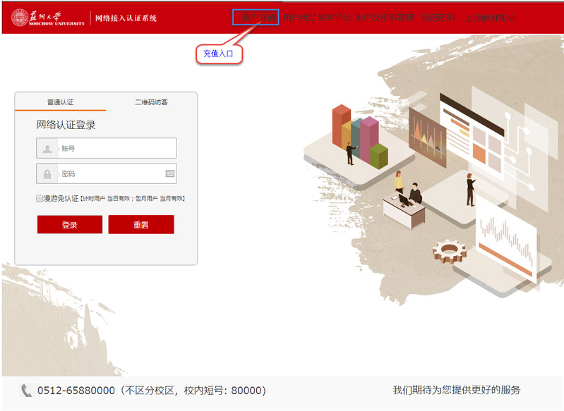 1.网页充值:网关登录页面 点击“账户充值”并登录充值(因充值需与外网通讯,充值前请先登录网关)。