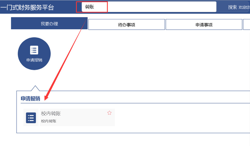 登录高级财务平台一门式财务服务平台(图1),搜索转账(图2),转账类型选择1-1网络流量费,转入项目号为85314001(图3)。后续按照提示操作即可,填写过程如果有疑问,请咨询财务处。数据资源与信息化建设管理处收到财务处推送数据后将及时进行网关账号充值。