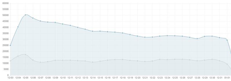 2019年12月全校无线终端趋势图