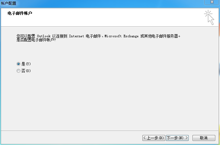 2、启动Outlook软件,如果从没有使用过,则会启动一个配置向导。