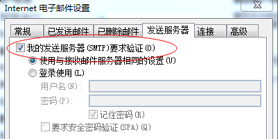 点击“其他设置”,对账户进一步设置。在“发送服务器”中,勾选“我的发送服务器(SMTP)要求验证”。