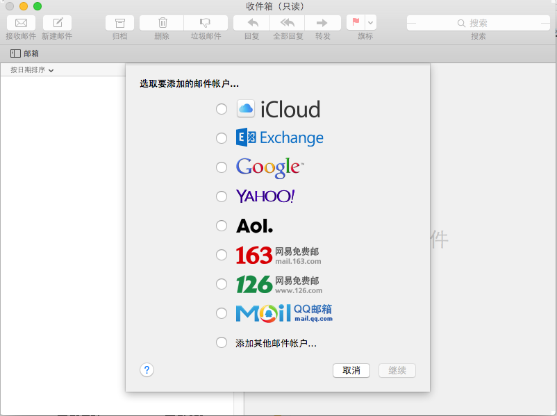 图1MAC操作系统自带邮件客户端起始界面