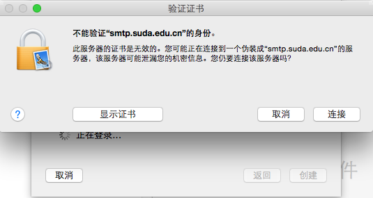 图8警告发件服务器证书无效