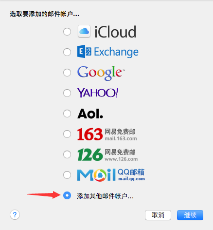 图2选择“添加其他邮件账户……”