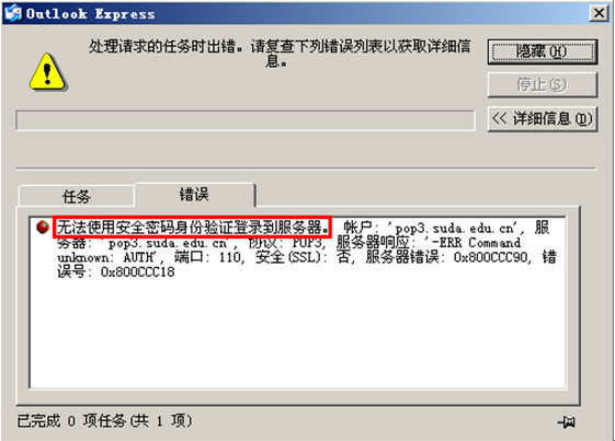 原因:在配置Outlook Express客户端的时候,“使用安全密码验证登录”前打“√”。