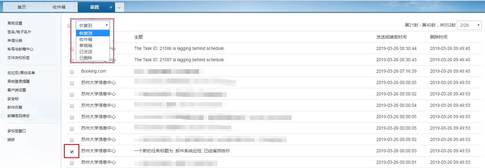 2.开启 “邮件恢复” 之前被删除的邮件及文件资料也能被恢复;