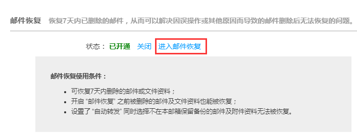 注意:不是所有的邮件都能恢复,邮件恢复使用条件如下: