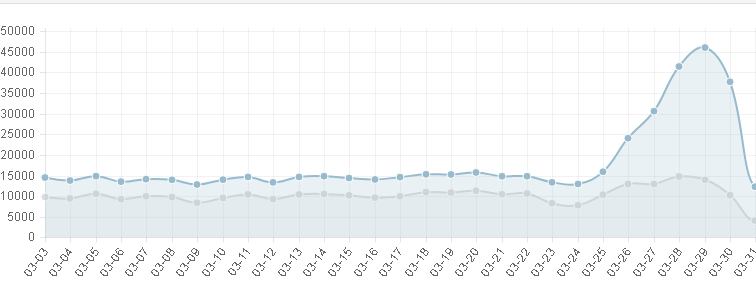 3月全校无线在线终端趋势图