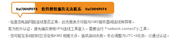 故障现象:激活Windows系统时,运行激活软件出现错误代码:0xC004F074